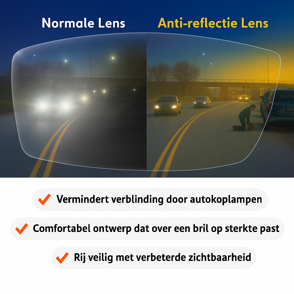 Anti-verblinding nachtbrillen zijn de oplossing. Deze gepolariseerde nachtbrillen verminderen de felle schittering van koplampen en maken autorijden in het donker duidelijker, comfortabeler en stressvrij.