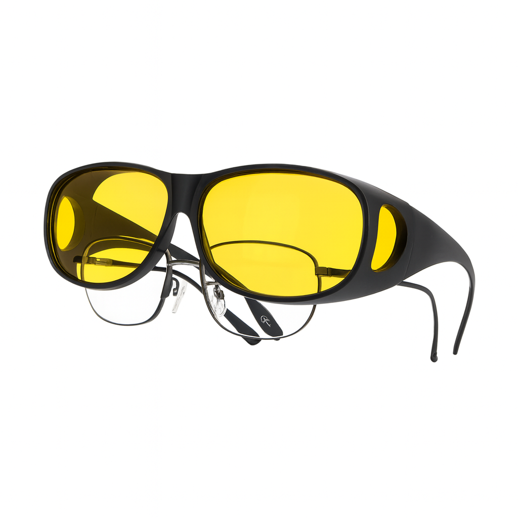 De bril past gemakkelijk over mijn bril op sterkte en zit erg comfortabel. Ze doen goed hun werk in het verminderen van de felheid van verkeerd afgestelde LED-koplampen. Ik heb de bril gekocht omdat ik vind dat deze nieuwe LED-koplampen erg storend zijn, vooral wanneer een auto met zulke lampen vlak achter je rijdt en je verblindt via de achteruitkijkspiegel.